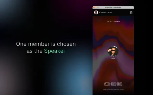 Mysterious is a private group messenger app for communities. The app is designed to foster meaningful discussions in tight-knit groups of people with shared interests. There is only one post at a time, made by the Speaker of the day. The Speaker leads a discussion for the day and then passes the mic to another member of the community.