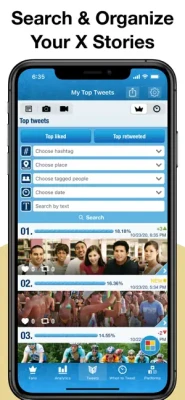 • RANKING CHARTS: look at the chart with pictures, rank position and quick details about each of your top followers, kept up-to-date with the latest info from X.
