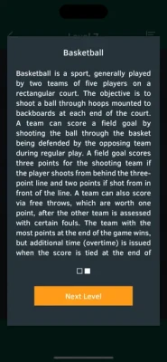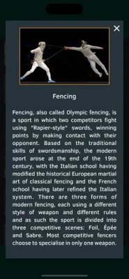 Completing the game unlocks the gallery which contains information sheets for all the sports included in the quiz.