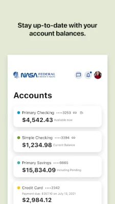 The NASA Federal digital banking app brings convenience right to your fingertips. Through its new, simplified design, you’ll be able to find your account information at the speed of light. Manage your finances on-the-go, from anywhere and at any time–in just a few taps.