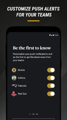 Customized push notifications for sports alerts about the Celtics, Patriots, Red Sox, and Bruins