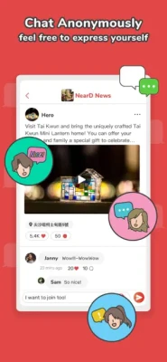 nearD is an open platform that you can make friends, post feeds or leave a comment confidentially. With anonymous profiles, you can express yourself freely.