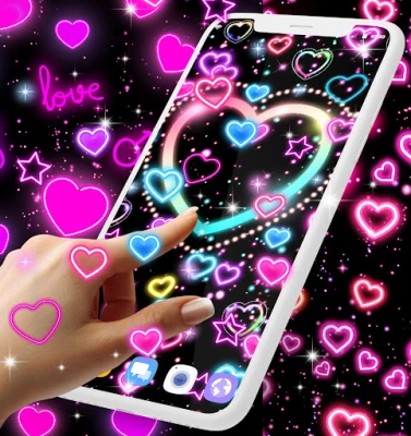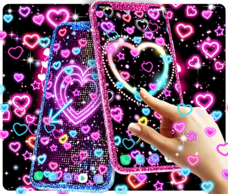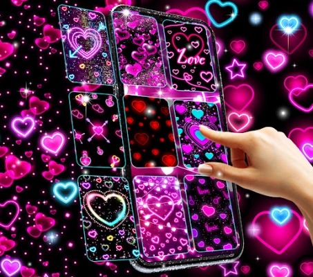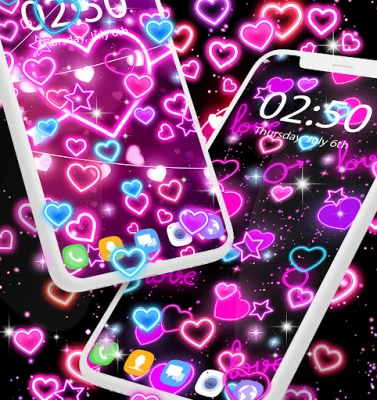 Glowing neon hearts will fall over your screen. This is such a cool app you will like it for sure! The hearts come in various colors like pink and blue with glowing borders and disco colors with luminous styles.