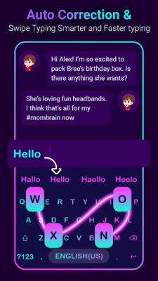 You can customize a beautiful keyboard with your own photos, GIFs, Font Style, Key Border, Key Tap Sound, and color keyboard themes.