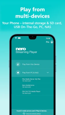 Just launch the uPnP / DLNA compatible media server on your NAS. Nero Streaming Player Pro will show a complete list of all available servers. Select your preferred one and browse or cast all media located on your NAS.