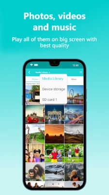 Installing Nero Streaming Player Pro, it allows to play photos, videos & music from your phone or tablet to your Smart TV or DLNA receiver. Just connect your phone, PC, NAS and Smart TV to the same WiFi network and get started. Open the app and select a photo, video or song and click on the TV symbol on the lower right corner. Choose one target device and get your media on the big screen or your audio system with this simple DLNA player!
