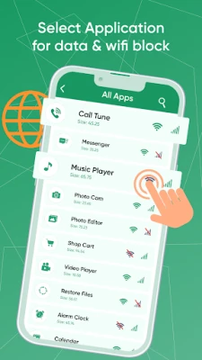 To view the list of all apps, the user needs to select the All-Apps tab on the home screen. They can then click on the wifi and mobile data icons in front of each app which enables or disables them.