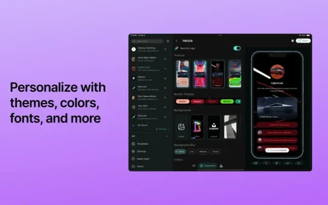 Personalize your design to align with your brand and style. Gain full control over colors, fonts, and button styles, add a bio, and even upload custom background images and gifs. You can also choose from pre-designed themes to get started even quicker.