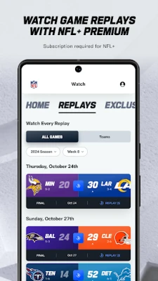 - Relive gameday with game replays including full, condensed, and All-22 coaches' films across devices, all ad-free.