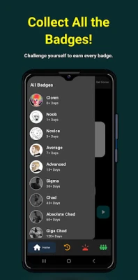 The internet loves the idea of being a "CHAD" (popular internet meme character), a symbol of confidence and self-improvement. We wanted to make this concept helpful by inspiring people to quit the harmful habit of PMO addiction. Our NO MORE FAP app supports you on this journey by counting your no-fap days and awarding badges that help you stay motivated as you progress.