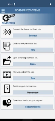 A demo mode is available for testing the NORDCON APP, with which the app can be used without electronic drive technology.