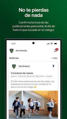 La app de Northlands habilita una comunicación más directa y en tiempo real con toda la comunidad del Colegio facilitando la información relevante para cada usuario