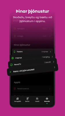 Kíktu Baksviðs til að fylgjast með öllum þjónustunum þínum, fylltu á frelsið og breyttu stillingunum þínum.