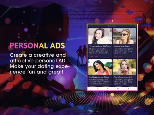 Create a personal ad to share who you are and what kind of people you want to meet. Post more than one ad if you want to explore different types of connections.