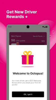 The Octopus Driver App is a quick and easy way for Octopus drivers to access their account and cash out earnings, track progress towards their next payments, update contact information, and more. It’s the mobile application version of the existing driver web dashboard, plus a few exciting new features!