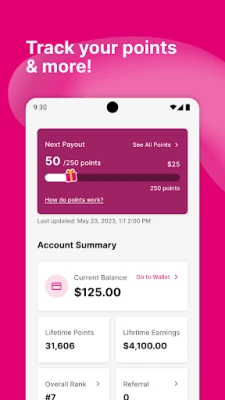 Key Features: Login with Face ID or Fingerprint Change your contact information (email, phone number) Check your points on the go Cash out earnings to a debit card, bank account, or e-gift card Set account to "away" mode for vacations and breaks Update the Driver Profile shown to riders