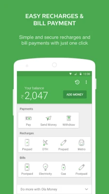 India’s easiest, fastest and safest - Ola Money wallet is here with all new user experience and one tap access to all your daily needs. Ola Money wallet can be recharged via Credit Card, Debit Card, and Net Banking. You can do prepaid mobile recharges, pay your postpaid mobile bills, electricity bills, gas bills and also pay at several stores with just one click.