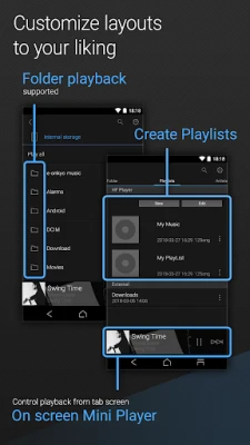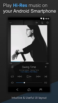 Get greater control of how music sounds on your Android device with our touch-adjustable linear-phase FIR equalizer, which offers 16,384 discrete bands of HD equalization with zero loss in audio quality. Create and save your own EQ presets or select an optimized filter created by professional musicians. HF Player for Android also enables playback of Hi-Res Audio formats including FLAC, 192 kHz/24-bit WAV, and DSD at no extra charge.