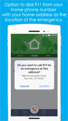 * Receive alerts when activity is detected with the option to remotely call 911 from your home phone number using your home address as the location of the emergency.