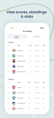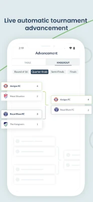 • For knockout rounds, winning teams get auto-advanced to the next round and all participants can view the live updating bracket