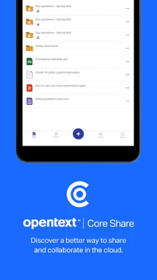 OpenText™ Core Share is a cloud-based file sharing and collaboration app that lets you easily and securely store, share, access and work with your pics, videos and documents from your Android device and the web. It’s the simple, secure and smart way to share and collaborate on files. Sign up is fast and free – you’ll have 2 GB of space and be sharing, collaborating and getting things done in no time!