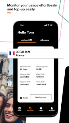 Don’t worry about staying connected in 4G or 5G during your trip abroad. With Orange Travel app, you can buy from home, top up and manage a generous local eSIM plan comfortably, in a few clics and avoid roaming fees.