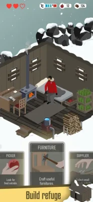 Fish in the glaciers, hunt with your spear and craft an axe at your workshop to become a lumberjack. To get out of this frozen hell and see your family once again, you must stay alive and repair your plane.