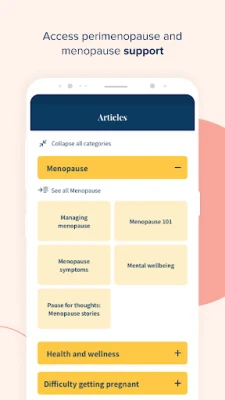 ◆ Symptom tracking, education, and support to navigate perimenopause and menopause confidently.