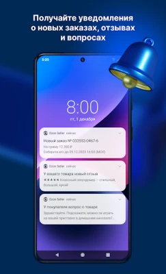 - receive notifications about new reviews and questions, orders and returns, Ozon news and app updates;