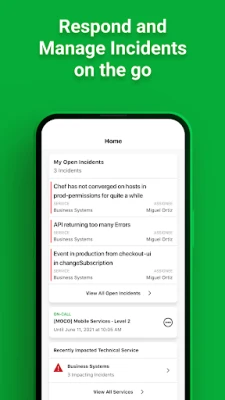 * Easily access and respond to open incidents (acknowledge, resolve, or reassign)