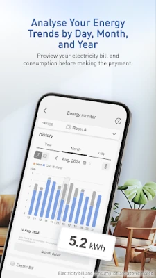 - View and monitor your air conditioning statistics (indoor/outdoor temperature, energy consumption graphs, etc.)