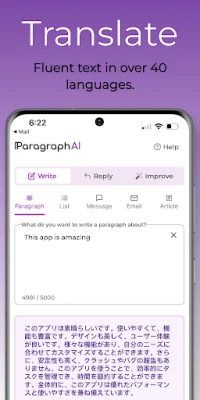 *WRITE* articles, essays, emails, messages, reports, text, and outlines on any topic. Simply describe what you'd like the AI writer to create -- "an essay outline on Macbeth", "a sales email outreach" -- and ParagraphAI will generate text in the format of your choice from a short paragraph to a detailed essay.
