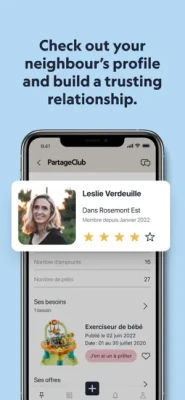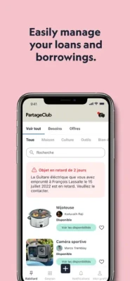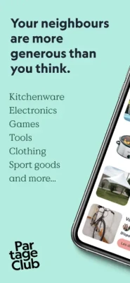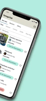 This application will help you buy less. Partage Club is an application that facilitates the lending of objects between neighbours in a safe, positive and unlimited way. The application allows you to limit your consumption, without asking you for a monetary or functional sacrifice. You can lend your objects as well as borrow from your neighbours, via catalogues of goods or by publishing your needs.