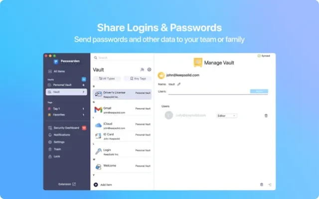 Passwarden by KeepSolid is your perfect password manager that encrypts all your data stored in our app and helps you get rid of remembering thousands of passwords.