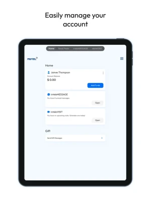 The Pay Tel app provides you with easy access to important functionality:Instant alerts for any notifications from Pay Tel™ or your inteleMESSAGE™ contacts.Current unread messages count indicator. Just press to open inteleMESSAGE™.Visibility to your current balance, and a link to the main PayTel.com site for Adding Funds.Send photos to inmates in eligible facilities.