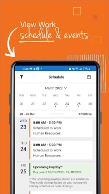 Calendar - view your work schedule, future pay dates, and time off