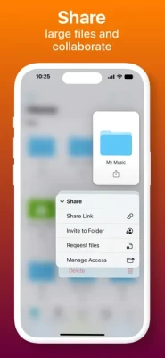 • Instantly share large files with friends and family via Download links.