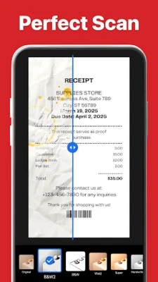 Improve scanned documents with multiple enhancement filters. Adjust brightness, contrast, and sharpness to make text clearer. Whether scanning handwritten notes or printed documents, this PDF scanner delivers high-quality results.