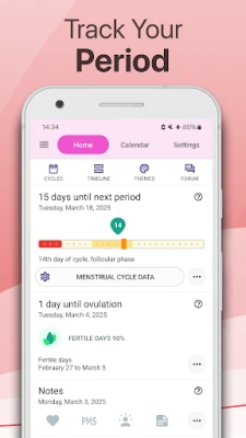 With our period calendar app you can enter daily notes and track PMS symptoms, moods, intercourse, period flow, results of ovulation test etc.