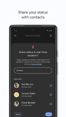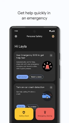 • Safety Check: Set a check-in timer for your phone to confirm you’re safe. If you don’t respond when the timer runs out, Emergency Sharing automatically starts. Also works with Google Assistant.