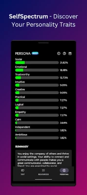 Developed with expertise from clinical psychologists, this app provides unparalleled insights into your personality traits, rooted in the latest research in personality psychology. Whether you are looking to boost your self-esteem, improve your work ethic, or enhance your romantic relationships, this app is your go-to resource for valuable insights based on psychological research.