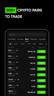 ● Spot Trading: Trade BTC, ETH, and 520+ pairs with deep liquidity and low fees.