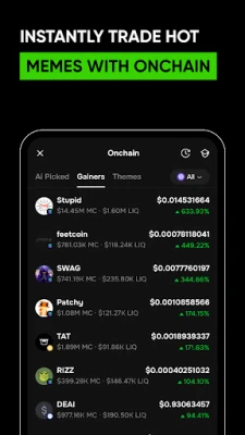 ● Onchain: Seamlessly trade trending meme coins with spot and futures in one gas-free, lightning-fast experience—powered by multichain liquidity and your Phemex account.