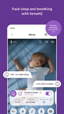 Monitor and feel reassured from anywhere with the Philips Avent Baby Monitor+ app.
