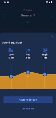 • Adjust streaming sounds with streaming equalizer (available for all hearing aid models except Philips HearLink 00)