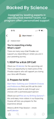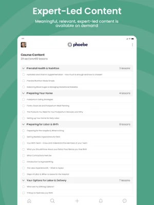 Phoebe is designed to offer comprehensive support to expecting parents from late pregnancy through working parenthood. In our app, you'll find ways to make meaningful connections by: -connecting with a community of peers navigating similar hurdles -learn from experts on relevant subjects such as birth prep, sleep, pre/post natal movement and physical therapy, holistic nutrition, and more -preparing to make and integrate lifestyle changes as you return to work -and much more!