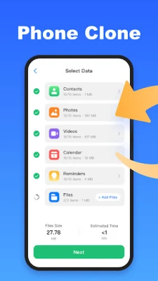 Smart Switch Phone Clone app allows you to seamlessly transfer your data including contacts, photos, videos, files, and more data between devices. Data Transfer App is a powerful phone cloning tool that supports seamless data migration between Android and iOS devices. By connecting via Wi-Fi or QR code, users can quickly and securely transfer contacts, photos, videos, calendars, reminders, and other documents. Whether you’re upgrading to a new phone or backing up personal data, this app ensures a secure, stable, and reliable data transfer experience.