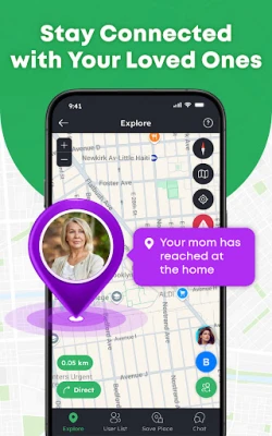 This phone location tracker app helps you feel close, even when you're far apart. You can check if your loved ones have arrived home, at school, or any saved place without having to call or text all the time.