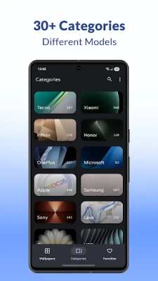 30+ Categories - With this app, you can explore wallpapers from 30+ different categories/brands. This section has wallpapers from every popular smartphone OEM’s like Apple, Samsung, Google, Nokia, HMD, Nothing, OnePlus, LG, Huawei, Xiaomi, Realme, Motorola, Lava, and more.