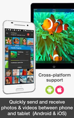• Exchange photos & videos between Android devices and iPhone / iPad over the local network
